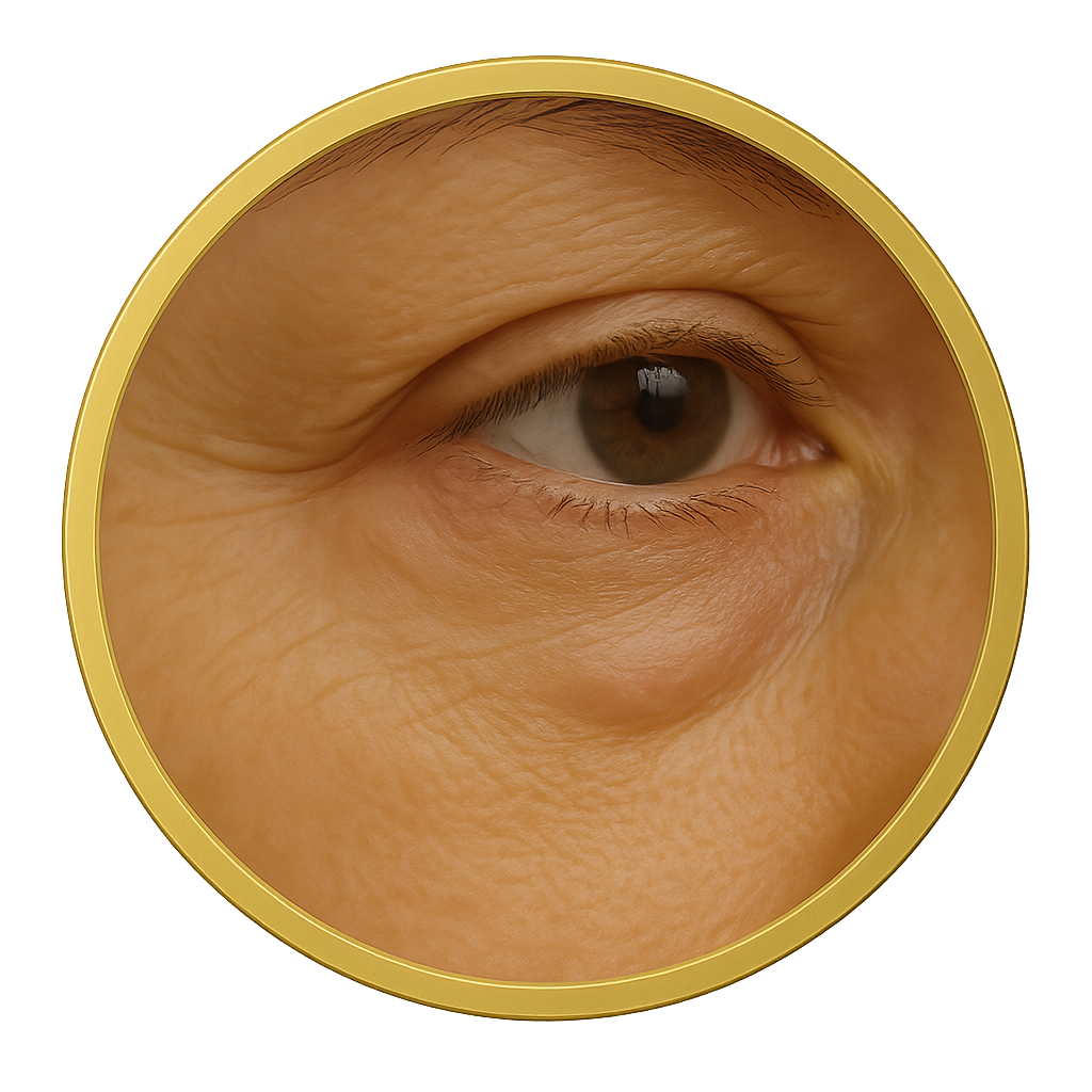 Skóra wokół oczu jest najcieńsza i najbardziej delikatna. Z wiekiem traci elastyczność i nawilżenie, co sprzyja powstawaniu tzw. kurzych łapek (zmarszczek mimicznych). Cienie i obrzęki pod oczami często wynikają z cienkiej skóry, zastoju limfy, zmęczenia lub uwarunkowań genetycznych.