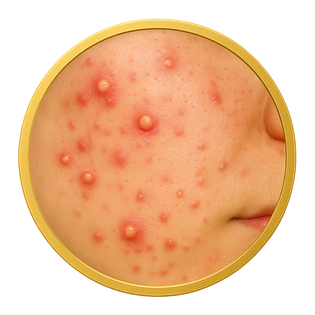 Nadmierna produkcja sebum + zaczopowane ujścia gruczołów i stan zapalny. Objawy: zaskórniki otwarte/zamknięte, grudki, krostki, czasem blizny i przebarwienia pozapalne. Nasilają go: stres, dieta o wys. IG, brak snu, drażniąca lub nadmierna pielęgnacja, hormony.